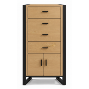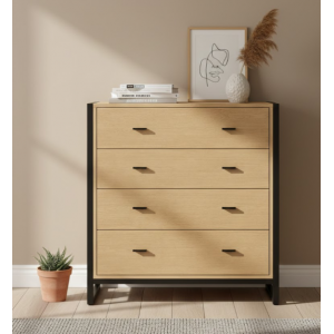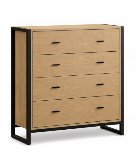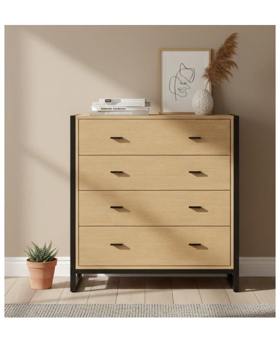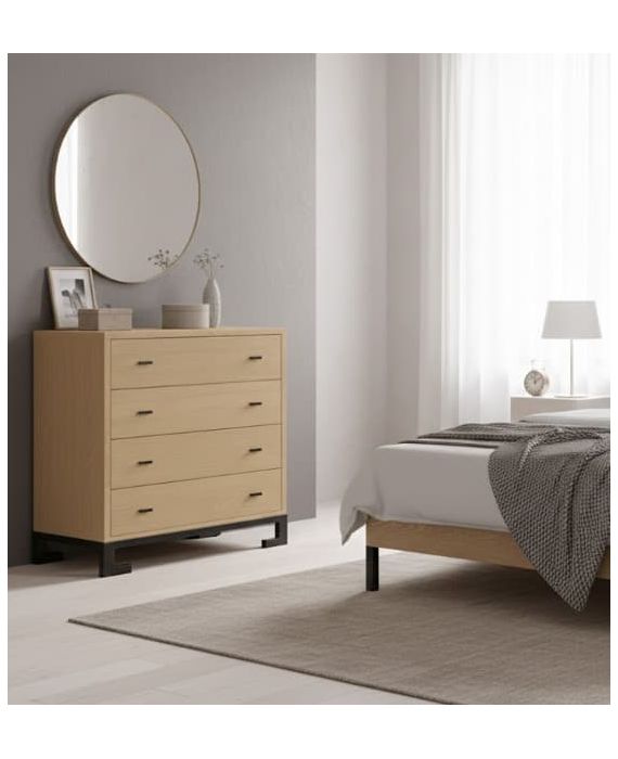 La cómoda DRAKKON está fabricada en chapa roble , con un diseño limpio y 4 cajones con tirador uñero , ideal para quienes buscan estética mínima y funcionalidad....