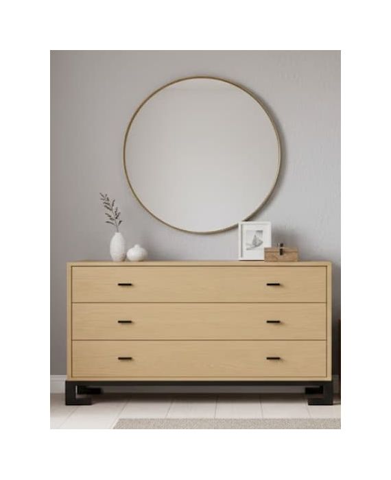 Madera de roble Cómoda de 3 cajones con tirador central de madera y cierre amortiguado , fabricada a medida...