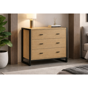 La cómoda DRAKKON está fabricada en chapa roble , con un diseño limpio y 3 cajones con tirador uñero , ideal para quienes buscan estética mínima y funcionalidad....