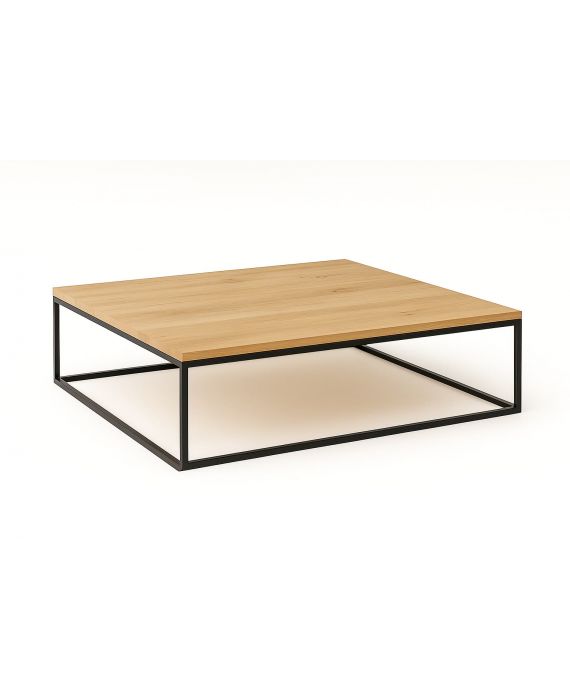 Mesa de centro cuadrada con tapa de madera y estructura de hierro. Diseño moderno y artesanal, disponible en distintas combinaciones de madera y metal. Ideal para salones de estilo contemporáneo o...