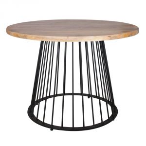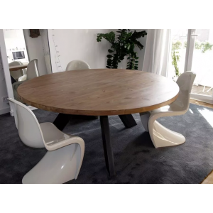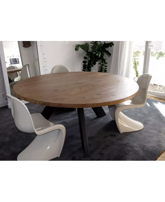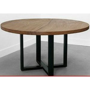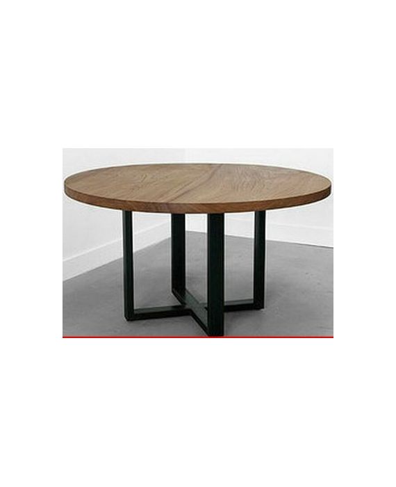 Encimera en chapa de roble natural · Estructura de hierro robusta · Altura: 75 cm · Diámetros disponibles de 80 a 160 cm · Personalizable en color y acabado · Diseño redondo de estilo industrial