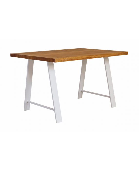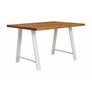 Encimera en chapa de roble natural · Estructura metálica de hierro robusto · Altura estándar: 75 cm · Medidas desde 100×100 hasta 200×100 cm · Acabados personalizables en madera y metal · Diseño...