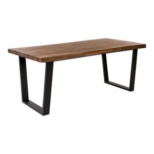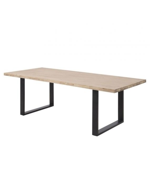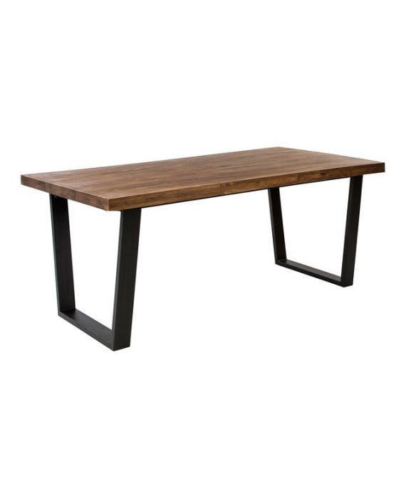 Mesa de comedor con estructura metálica en hierro y tapa personalizable en madera, mármol o cristal. Diseño industrial con líneas rectas y elegantes.