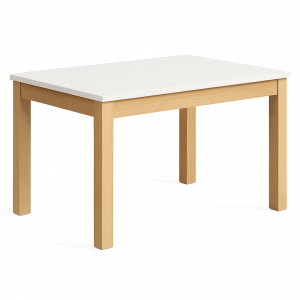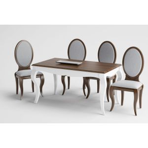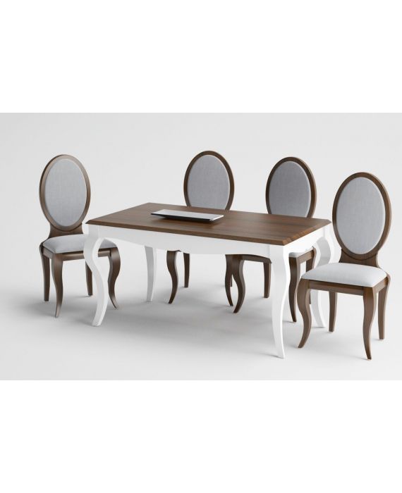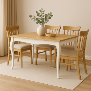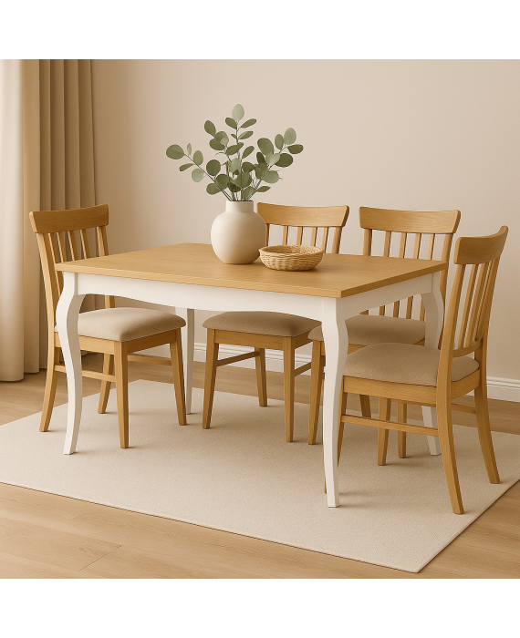 Mesa de comedor fabricada íntegramente en madera chapada de 40 mm. Diseño elegante y funcional, disponible en varias medidas y acabados personalizables.
