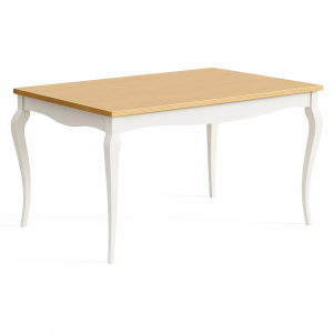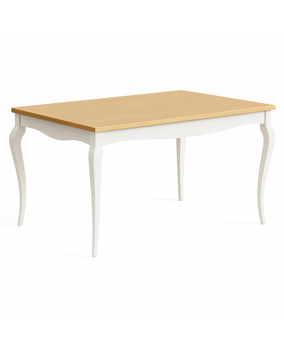 Mesa comedor modelo FRANCESA Madera de pino Patas curvas de tipo isabelino Sobre inclinado en chaflán Modelo extensible con cajillo 60 cm de suplemento Sistema deslizante y libro