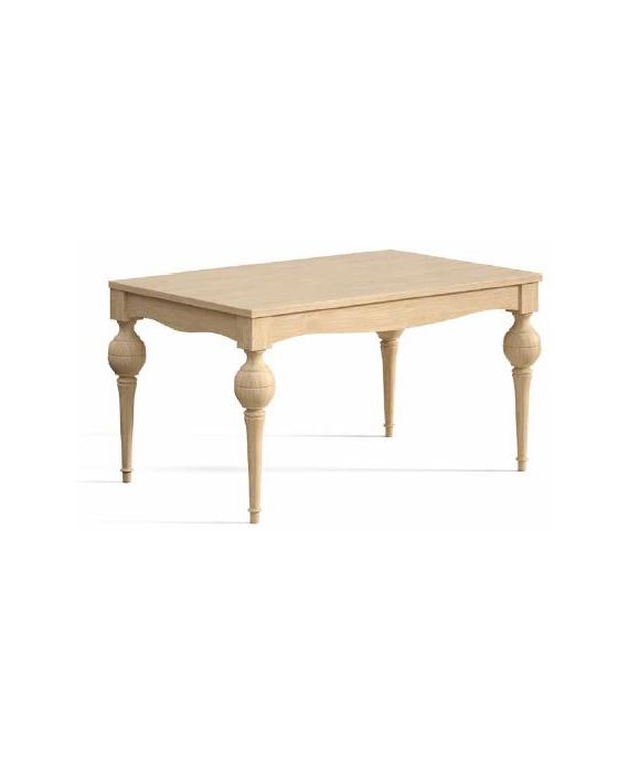 Encimera de pino con corte en chaflán · Patas isabelinas torneadas · Cajillo recto con moldura · Altura: 76 cm · Fija o extensible tipo carro libro (+55 cm) · Medidas desde 120×80 a 160×90 cm ·...