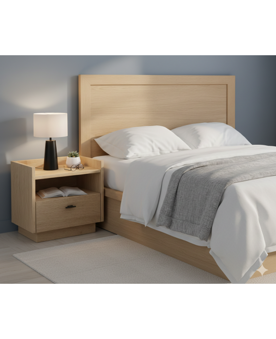 Mesita de noche fabricada en madera de roble con sistema de apertura hidráulica con cierre amortiguado . Diseño moderno y personalizable en ancho, con altura de 55...