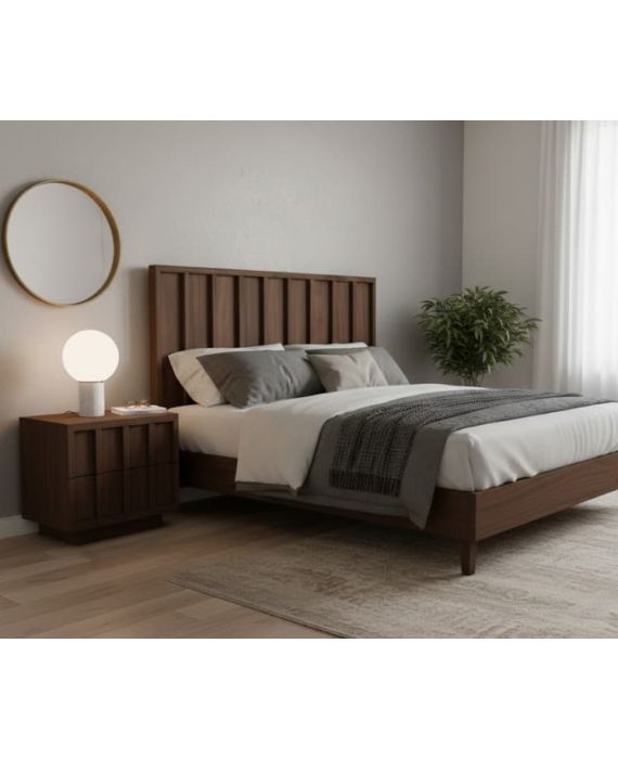 Mesita de noche fabricada en madera de roble con sistema de apertura Push To Open y cierre amortiguado . Diseño moderno y personalizable en ancho, con altura de 55 cm. Frontal de palillería....