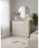 Cómoda de 4 cajones con apertura hidráulica y cierre amortiguado, fabricada a medida en chapa roble. Diseño elegante con estructura ligera y proporciones equilibradas. Se sirve montada y con portes incluidos.