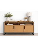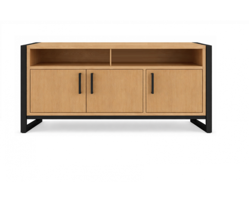 Aparador HIMA de 3 puertas fabricado en chapa de roble con base de hierro pintada en tren de pintura y secada al horno.