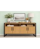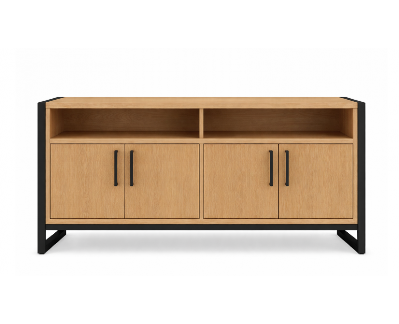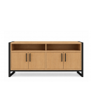 Aparador HIMA de 4 puertas fabricado en chapa de roble con base de hierro pintada en tren de pintura y secada al horno.