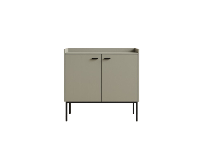 Aparador LAVORA 2 puertas con balda interior fabricado en chapa de roble con base de hierro pintada en tren de pintura y secada al horno.