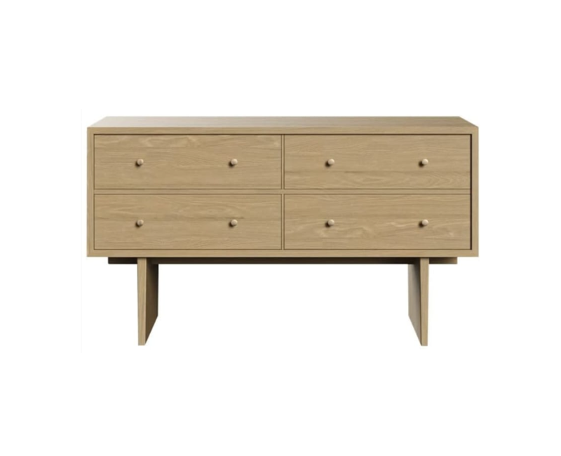 Cómoda modelo BONIT fabricada en chapa roble, con cuatro cajones de apertura hidráulica con cierre amortiguado y tiradores.
