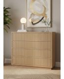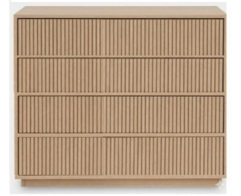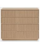 Cómoda de 4 cajones con apertura push to open y cierre amortiguado, fabricada a medida en chapa roble. Diseño elegante con estructura ligera y proporciones equilibradas. Se sirve montada y con portes incluidos.