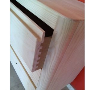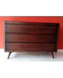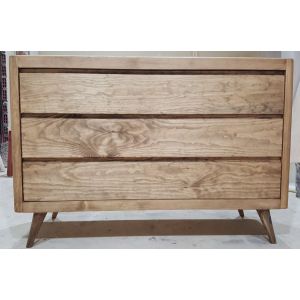 Fabricada 100 % en madera chapada, destaca por su estructura sólida y sus cajones amplios y de cierre suave, que ofrecen una gran capacidad de almacenaje.