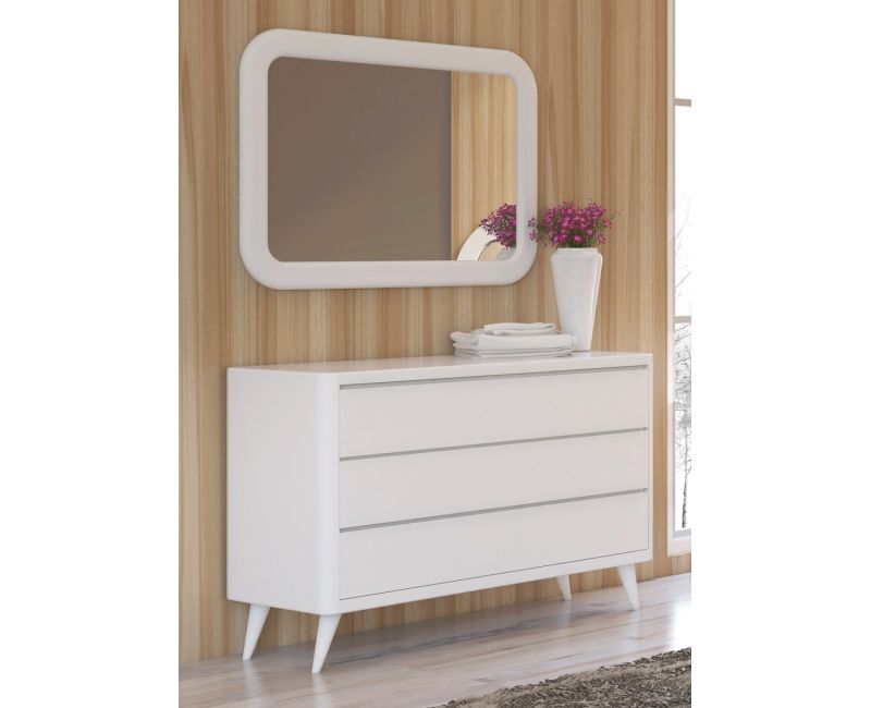 Con un diseño de líneas limpias y minimalistas, esta cómoda encaja perfectamente en dormitorios de estilo moderno, escandinavo o mediterráneo, aportando calidez y equilibrio visual.