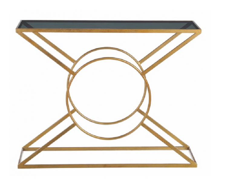 Consola con tapa de cristal templado y estructura de hierro personalizable. Diseño moderno y ligero, disponible en distintas medidas y acabados.