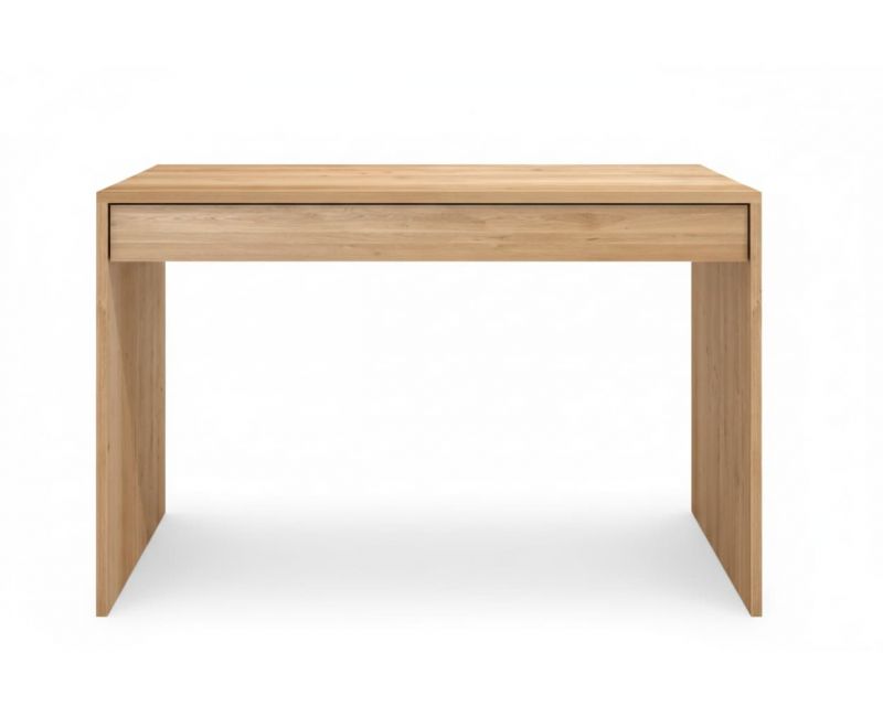 Modelo: KALKU · Material: chapa de roble natural · Estructura: 100 % madera · Medidas: 80 / 90 / 100 / 110 / 120 / 130 / 140 cm de largo · alto estándar 80 cm · fondo estándar 33 cm · Acabados: personalizables · Montaje: se entrega montada · Estilo: moderno, escandinavo, mediterráneo