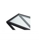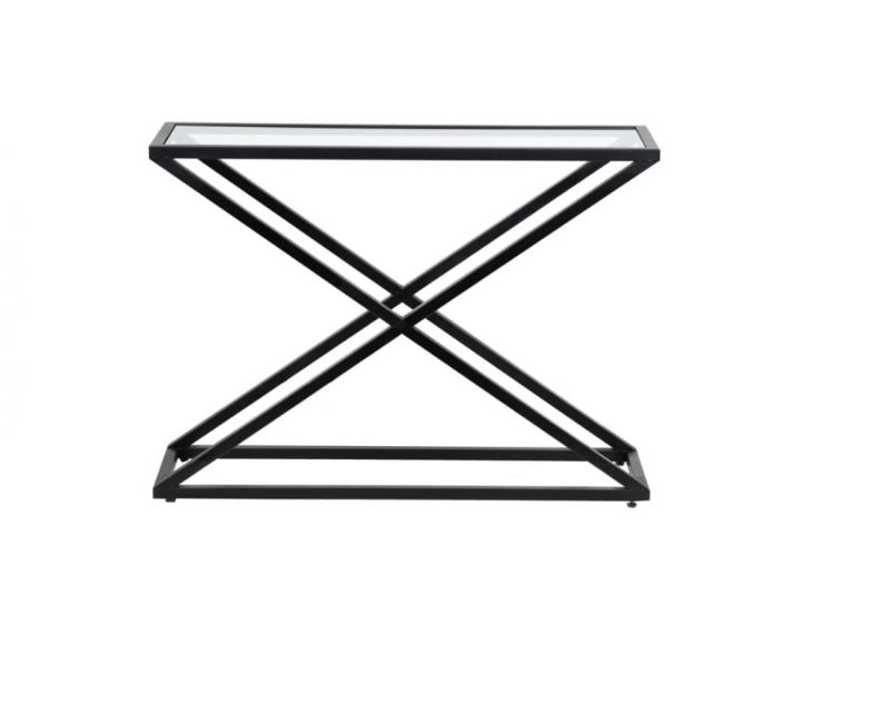 Consola con tapa de madera chapada y estructura de hierro personalizable. Diseño moderno y equilibrado, disponible en distintas medidas y acabados.