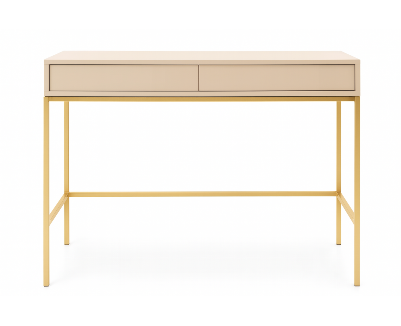 Dispone de dos cajones, ideales para organizar objetos de uso cotidiano. La estructura se apoya sobre una base de hierro pintado en tren de pintura y secado al horno, un proceso que garantiza estabilidad y un acabado duradero ante el uso diario.