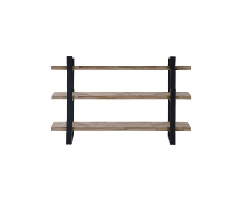Las baldas están fabricadas en chapa roble de 30mm , aportando calidez y naturalidad al conjunto. La estructura de hierro está pintada en tren de pintura y secada al horno, lo que garantiza un acabado uniforme, resistente y duradero para el uso cotidiano.