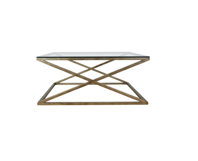 Mesa de centro con tapa de cristal templado y estructura de hierro personalizable. Diseño moderno, elegante y ligero, disponible en varias medidas y acabados.