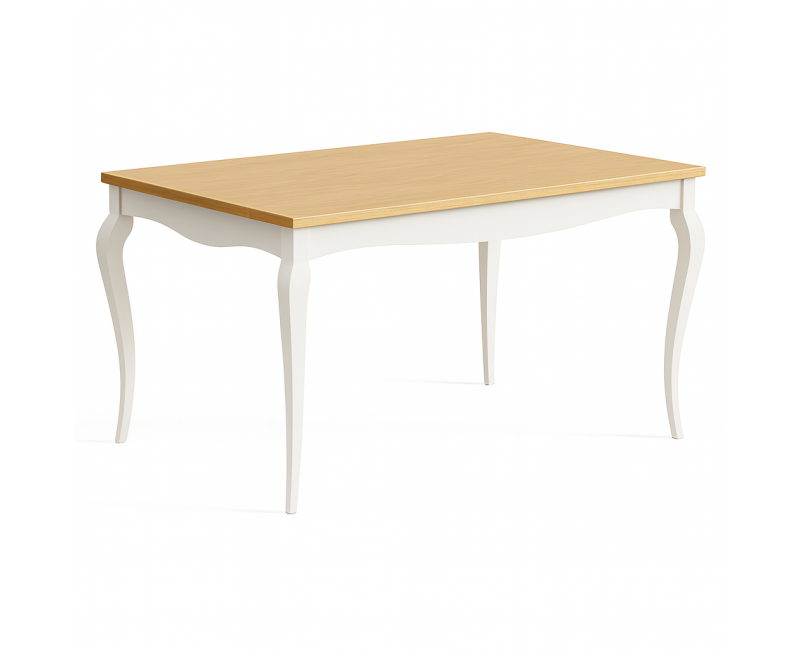 La **mesa CIVITAS** es una pieza elegante de estilo clásico, ideal para comedores con personalidad atemporal. Su diseño incorpora **patas isabelinas torneadas** y una encimera de pino natural con cajillo decorativo, lo que le da carácter y distinción.