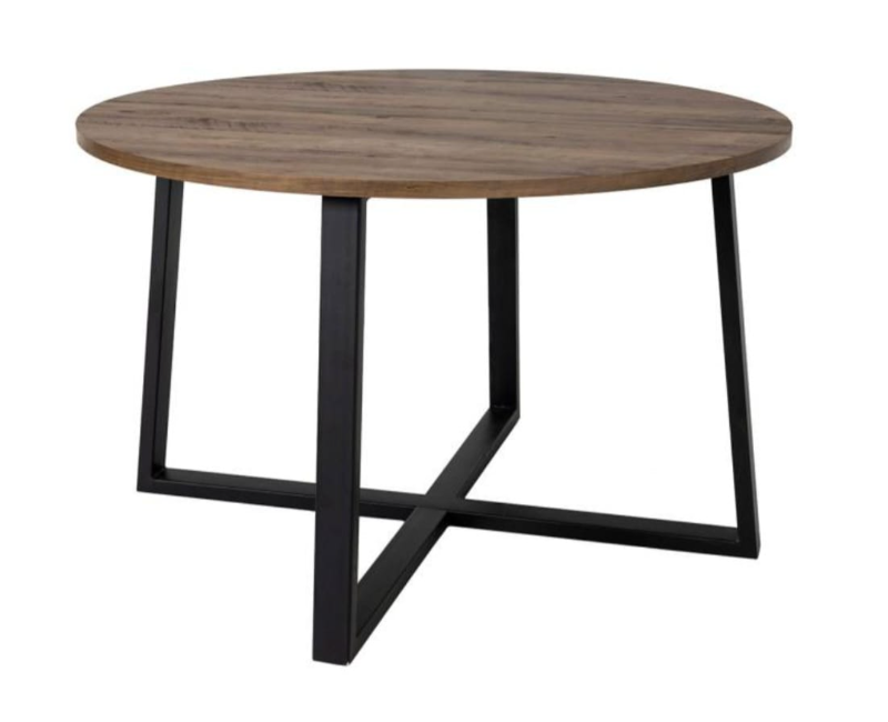 Estructura de hierro tubular 60×20 mm · Encimera redonda de madera de roble · Altura: 75 cm. · Diámetros de 80 a 120 cm · Diseño industrial ·
