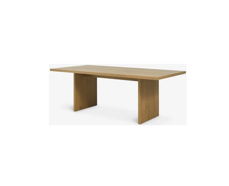La Mesa de comedor Fraoca destaca por su diseño limpio, cálido y natural, fabricada íntegramente en chapa de roble.