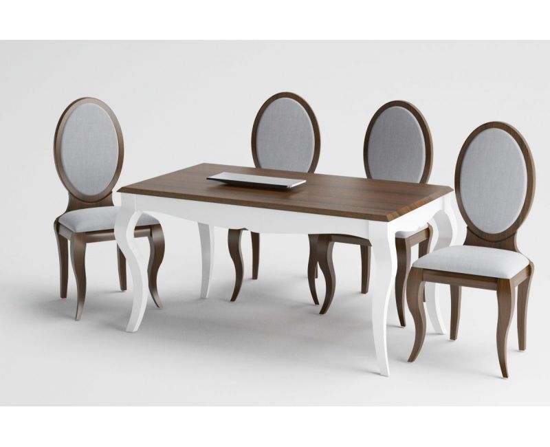 La **mesa HENRY** combina un diseño clásico con materiales naturales y detalles de gran calidad. Su encimera de pino incluye un elegante **corte en chaflán**, y su base está formada por **patas isabelinas torneadas** que aportan un aire señorial y cálido.