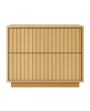 Mesita de noche fabricada en madera de roble con sistema de apertura Push To Open y cierre amortiguado. Diseño moderno y personalizable en ancho, con altura de 55 cm. Frontal de palillería.