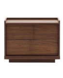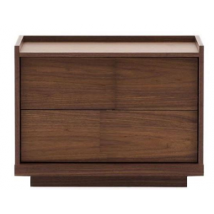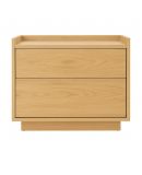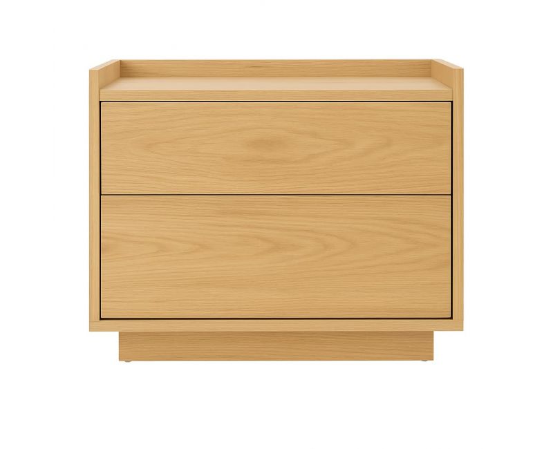 Sus dos cajones amplios permiten organizar todo lo necesario para el día a día, manteniendo un frente uniforme que aporta continuidad visual y orden en el dormitorio. El diseño incorpora una base ligeramente elevada que refuerza la estabilidad y aporta ligereza al conjunto.