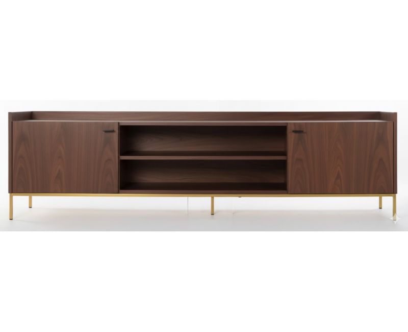 El mueble se apoya sobre una bancada de hierro, que aporta ligereza visual y una mayor estabilidad al conjunto. Todo el hierro va pintado en tren de pintura y secado al horno, garantizando un acabado uniforme, resistente y duradero.