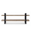 Las baldas están fabricadas en chapa roble de 30mm de grosor , aportando calidez y naturalidad al conjunto. La estructura de hierro está pintada en tren de pintura y secada al horno de 20mm x 60mm, lo que garantiza un acabado uniforme, resistente y duradero para el uso cotidiano.