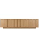 Mueble de televisión PALI 4P en chapa roble, con 4 puertas push to open, zócalo integrado, 65 cm de alto y 35 cm de fondo.
