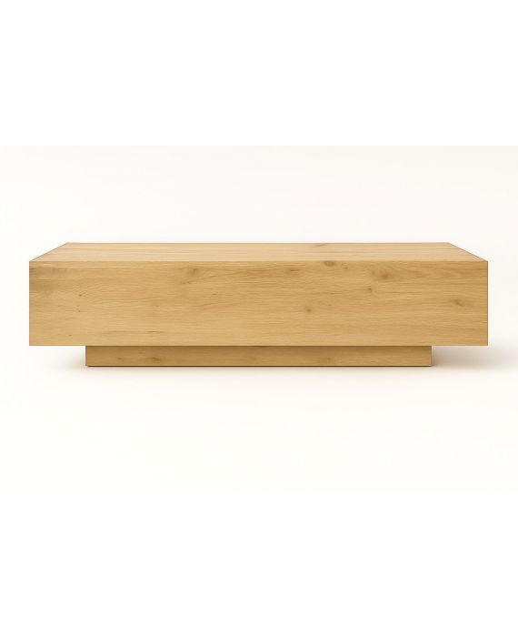 Mesa de centro 100 % madera con diseño minimalista y proporciones robustas. Disponible en varias medidas y acabados personalizados